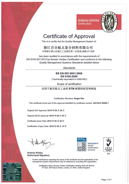 浙江百合航太復合材料有限公司成立于2014年,是集先進復合材料產(chǎn)品開發(fā)設計、生產(chǎn)、銷售、服務于一體的高新技術(shù)企業(yè), 主要產(chǎn)品有復合材料液體成型樹脂、碳纖維、玻璃纖維和芳綸纖維預浸料、以及結(jié)構(gòu)粘合劑膠膜等。
